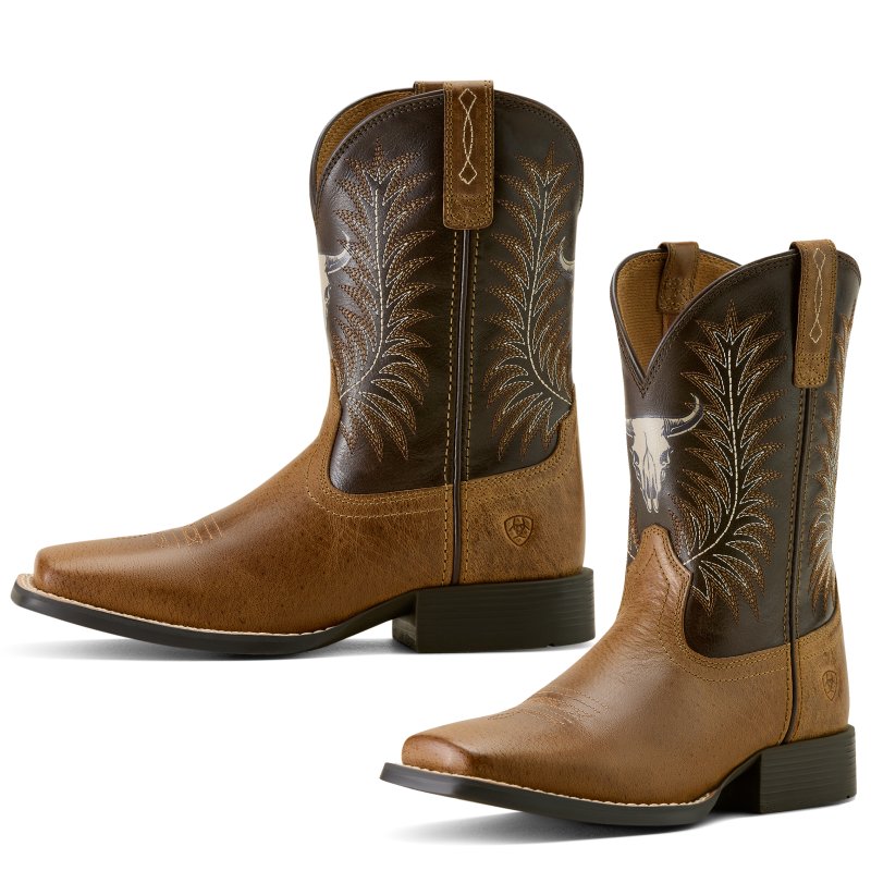 Let your little buckaroo step out in true western style with the Ariat® Stampede Steer Skull Boot. Designed to look just like Dad’s, this mini version delivers rugged durability with everyday comfort. Whether he’s exploring the backyard, the playground, or tagging along at the rodeo, these boots keep up with every adventure while showing off authentic cowboy flair.