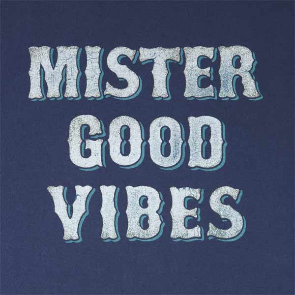 The laidback style of the Life Is Good Mister Good Vibes tee shirt is an instant classic. The soft Crusher tee is comfortable and all-time favorite for the last 20 years since Life is Good introduced it.